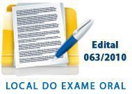 LOCAL DE APLICAÇÃO DO EXAME ORAL - EDITAL 63/2010 O exame será realizado no dia 15 de setembro às 14h Acesse o Edital Nº 63/2010 Edital Complementar nº1 ao Edital Nº 63/2010 - Quadro do local de aplicação do exame oral Fonte: PROGRAD Listar Todas Voltar