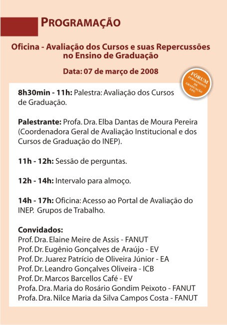 Oficina de Avaliação dos Cursos e suas Repercussões no Ensino de Graduação - 2008 Listar Todas Voltar