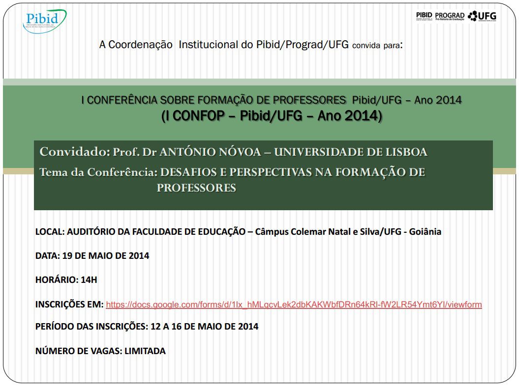 I Conferência sobre Formação de Professores Pibid/UFG – Ano 2014